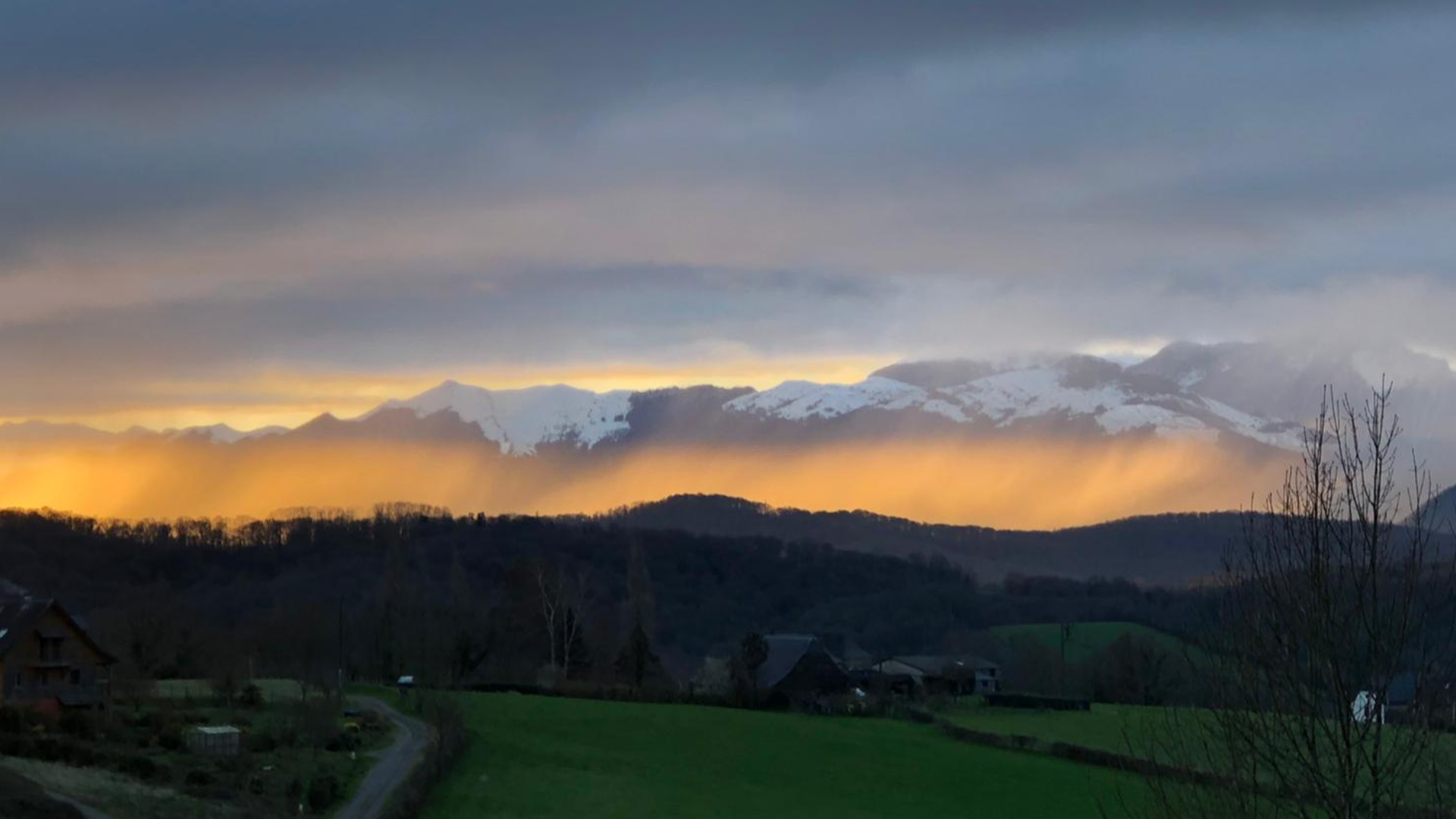 Vue sur les montagnes pyrénéennes, dans un environnement calme, champêtre, nous serons accueilli.e.s dans un lieu de vie connecté à la nature et créé par Babette, une de mes amies chères.